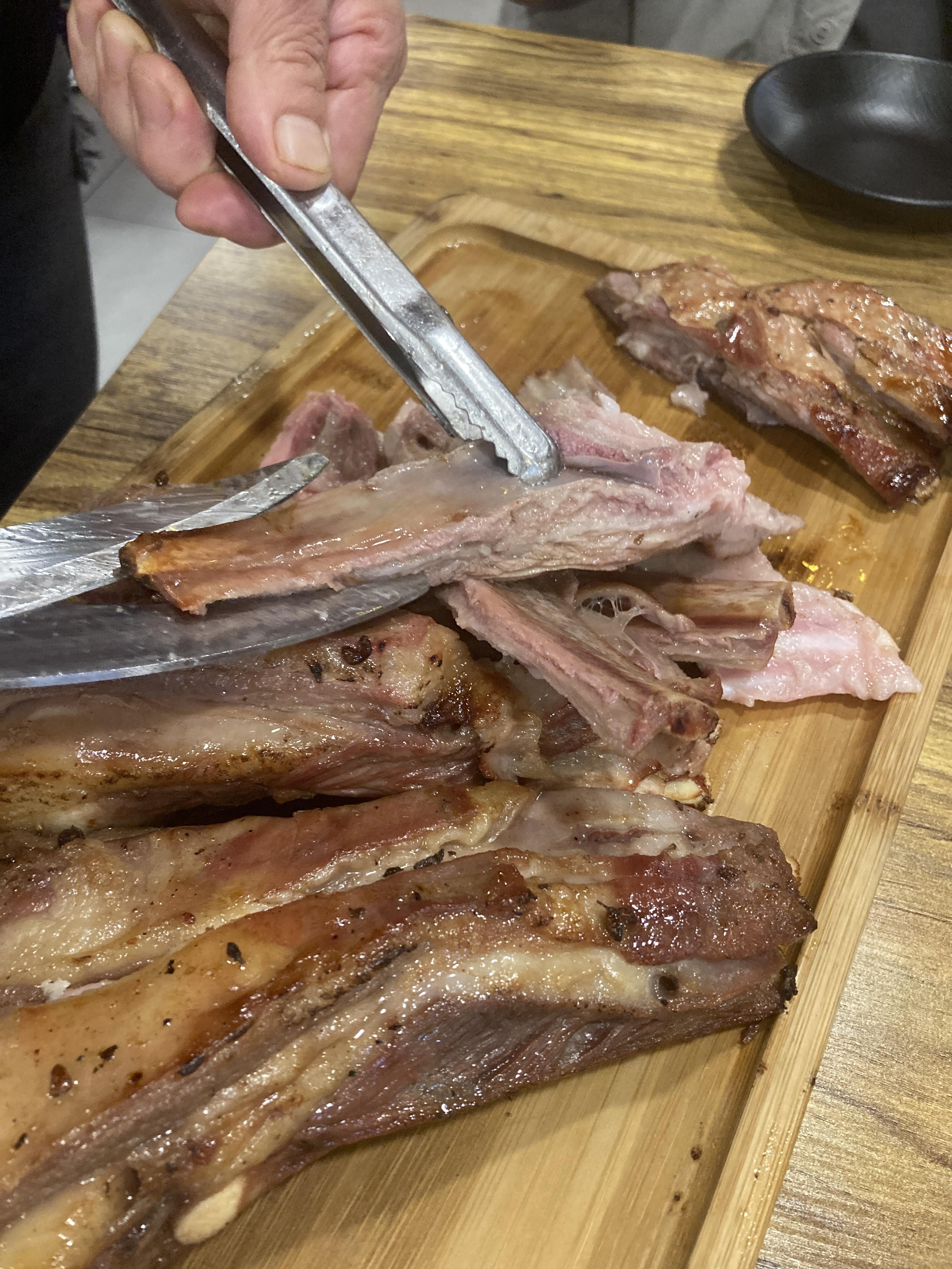통양갈비는 쫄깃한 갈비부위의 식감을 가지고 있으며 그냥 먹으면 양갈비의 고소한 맛과 느끼한 맛을 같이 즐길 수 있으며, 쯔란 가루에 찍어먹으면 간도 적당하고 향도 좋아 입에 착착 달라붙습니다.