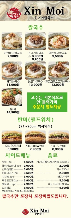 쌀국수와 반미가 대표 메뉴 입니다.