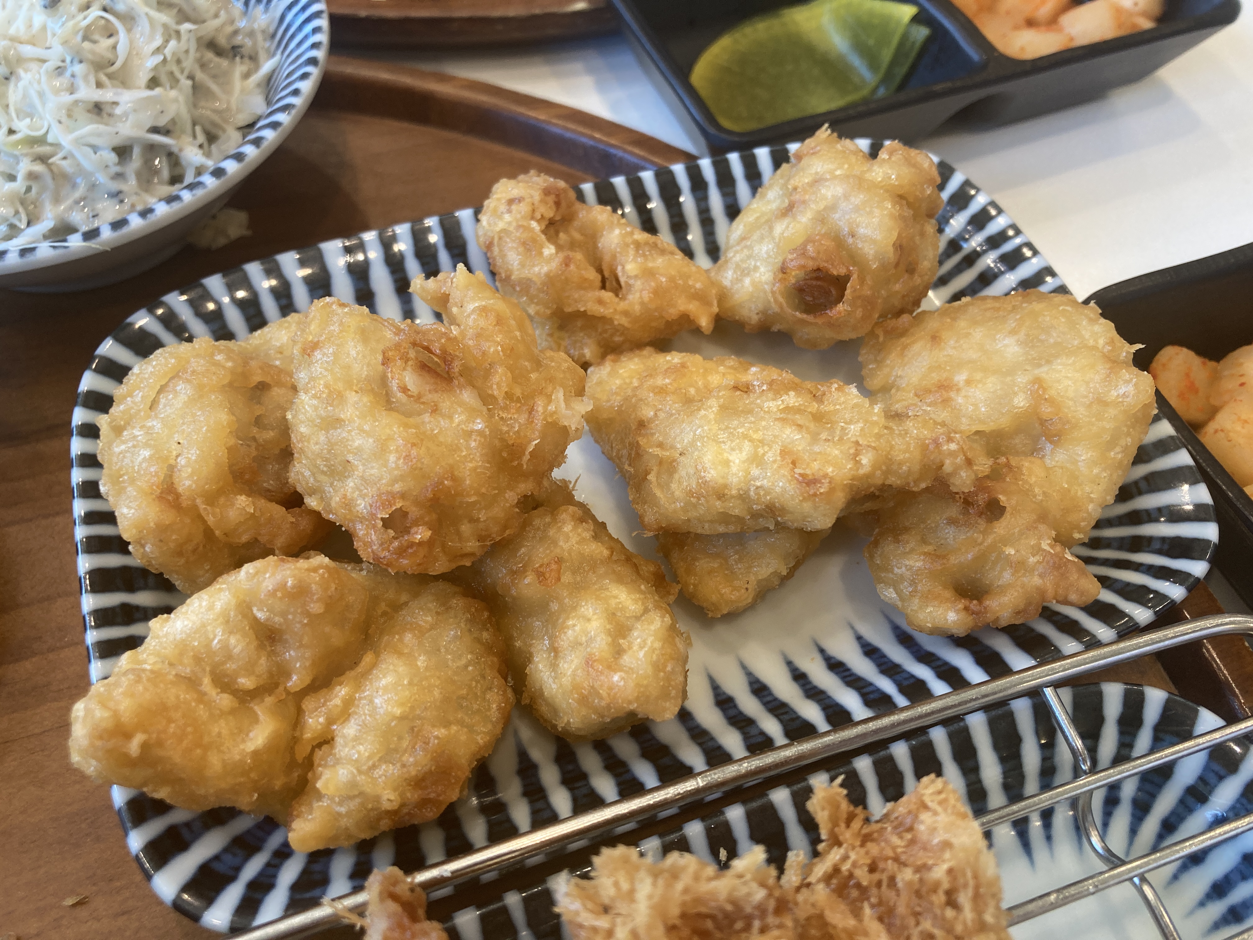 가라아게는 부드럽고 연한 식감이 닭다리살을 사용한 것 같으며 튀김은 바삭하고 두껍지 않았습니다.