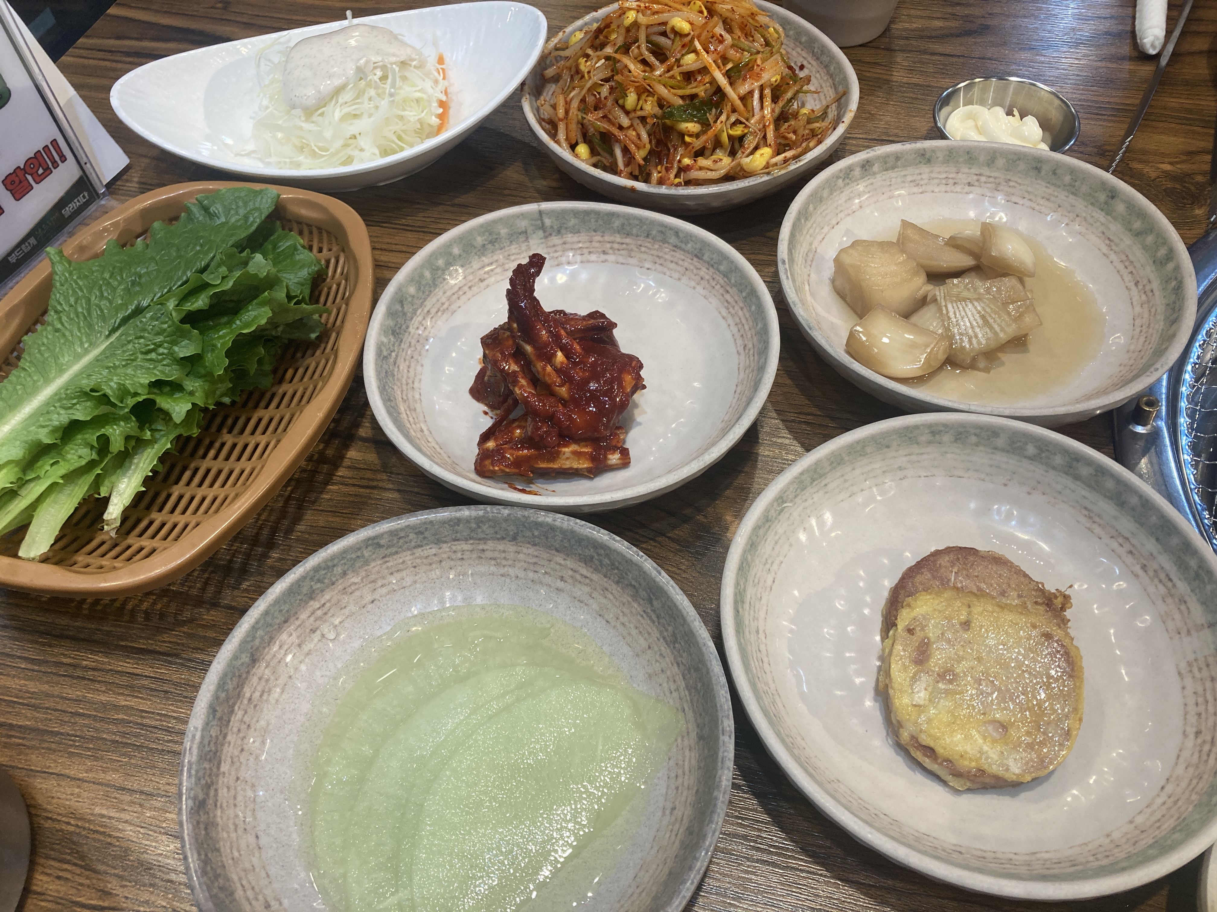밑반찬은 이렇게 깔끔하게 나오며, 콩나물 파절이가 특히 맛있었습니다.