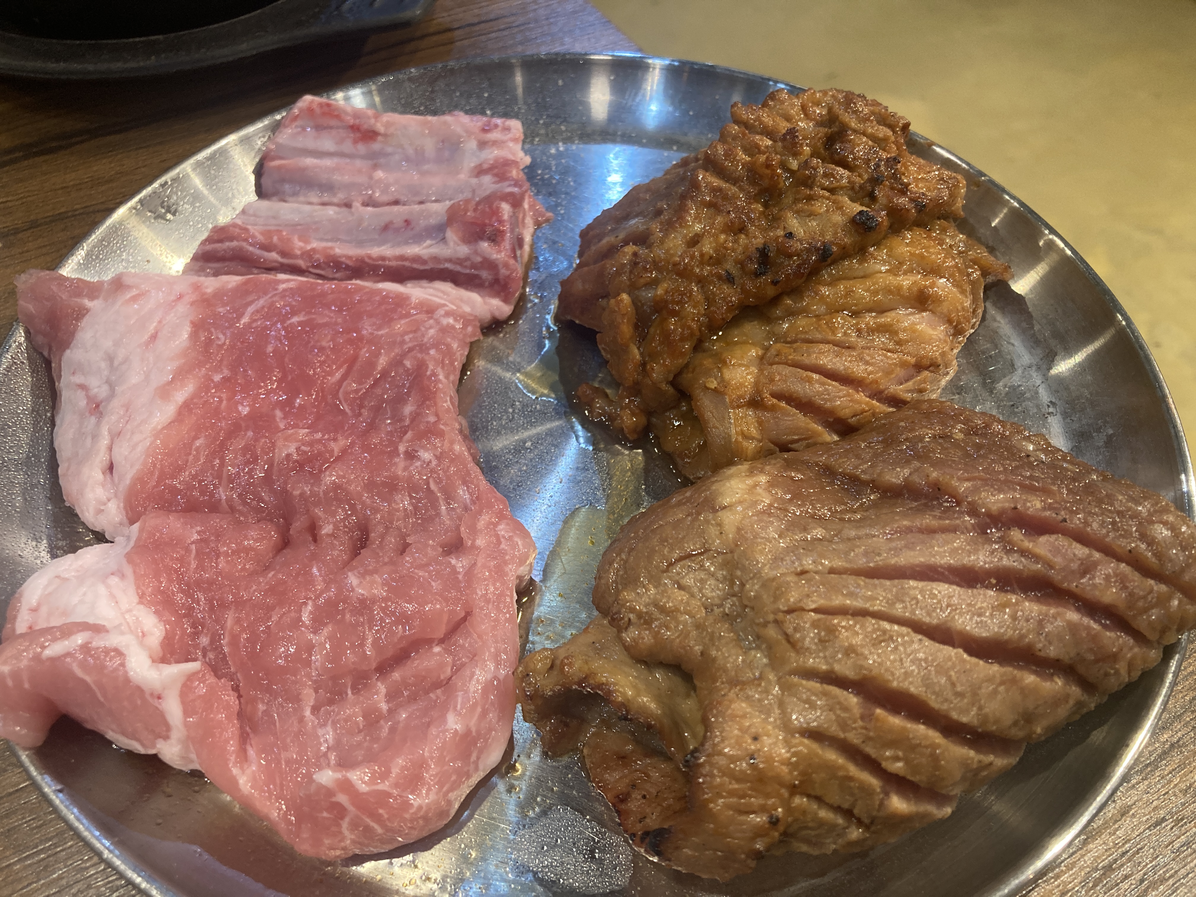 총 3가지 돼지갈비가 초벌 되어 나옵니다.
