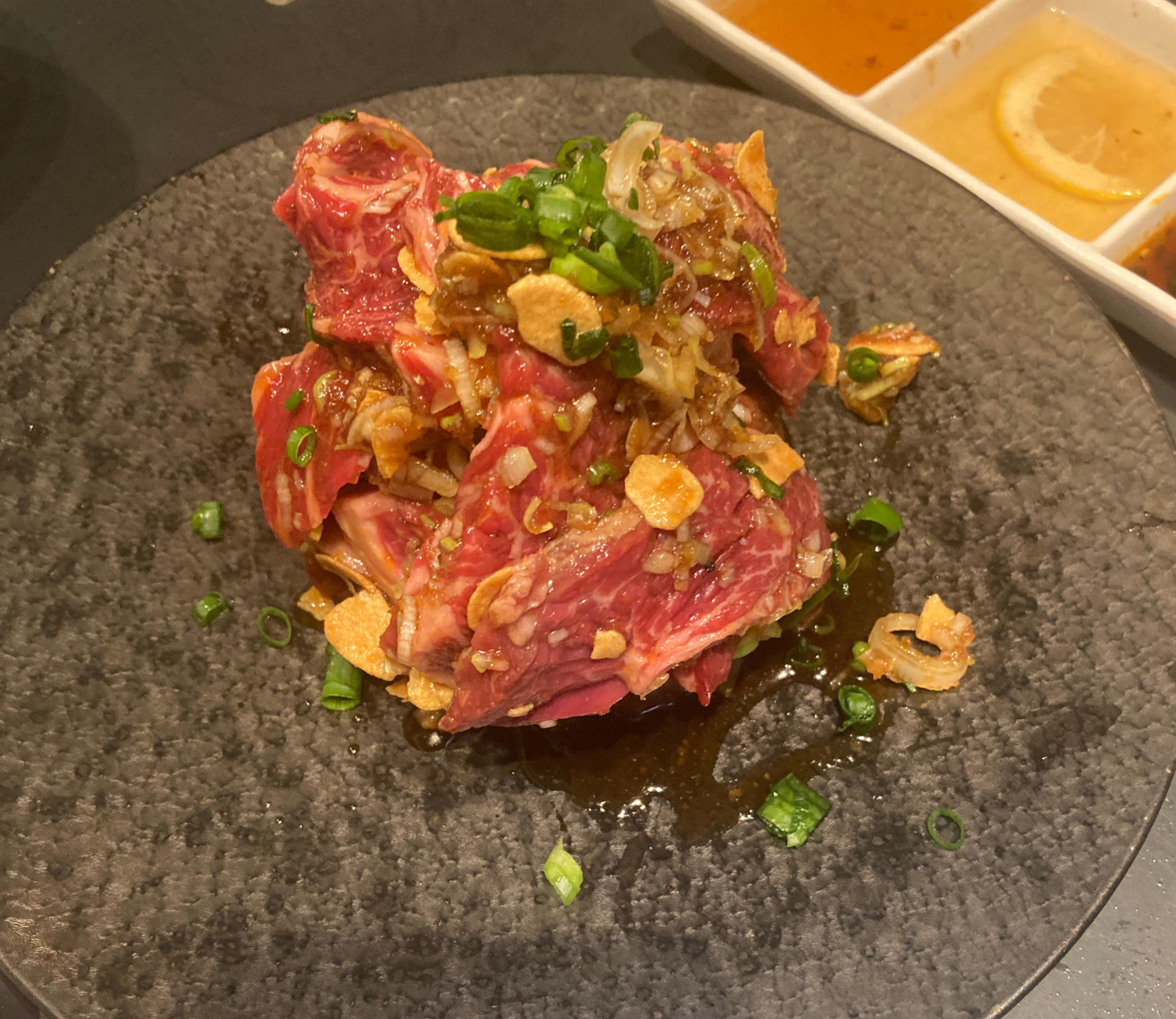 다른 부위들도 모두 맛있었으며 한 가지 아쉬운 것은 고기의 식감과 마블링이 너무 좋아서 양념이 안된 생고기로 먹을 수 있으면 좋겠다는 생각이 들었습니다.