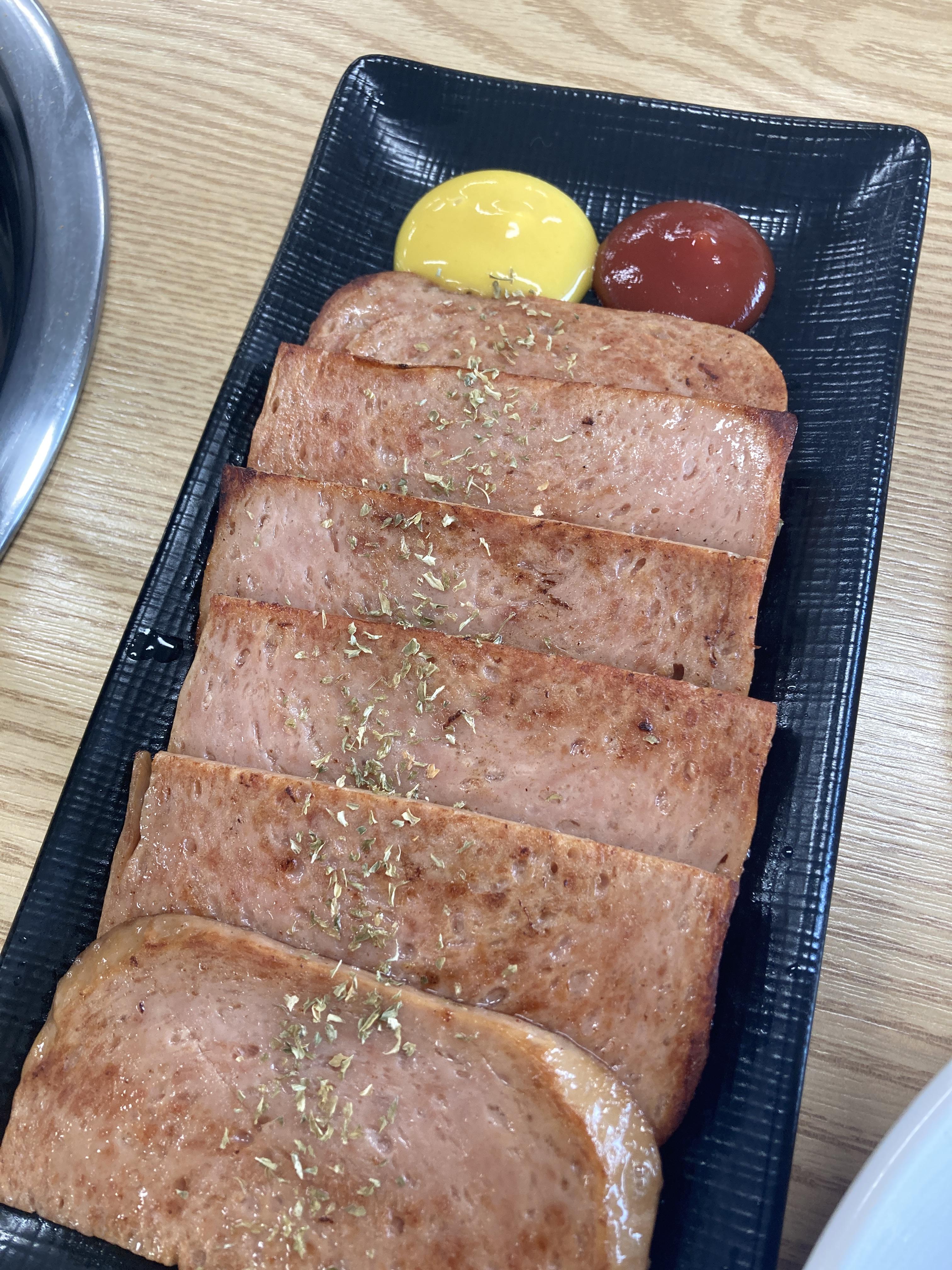 메뉴판을 보다가 사이드로 먹을 것을 찾다가 주문한 스팸구이입니다.