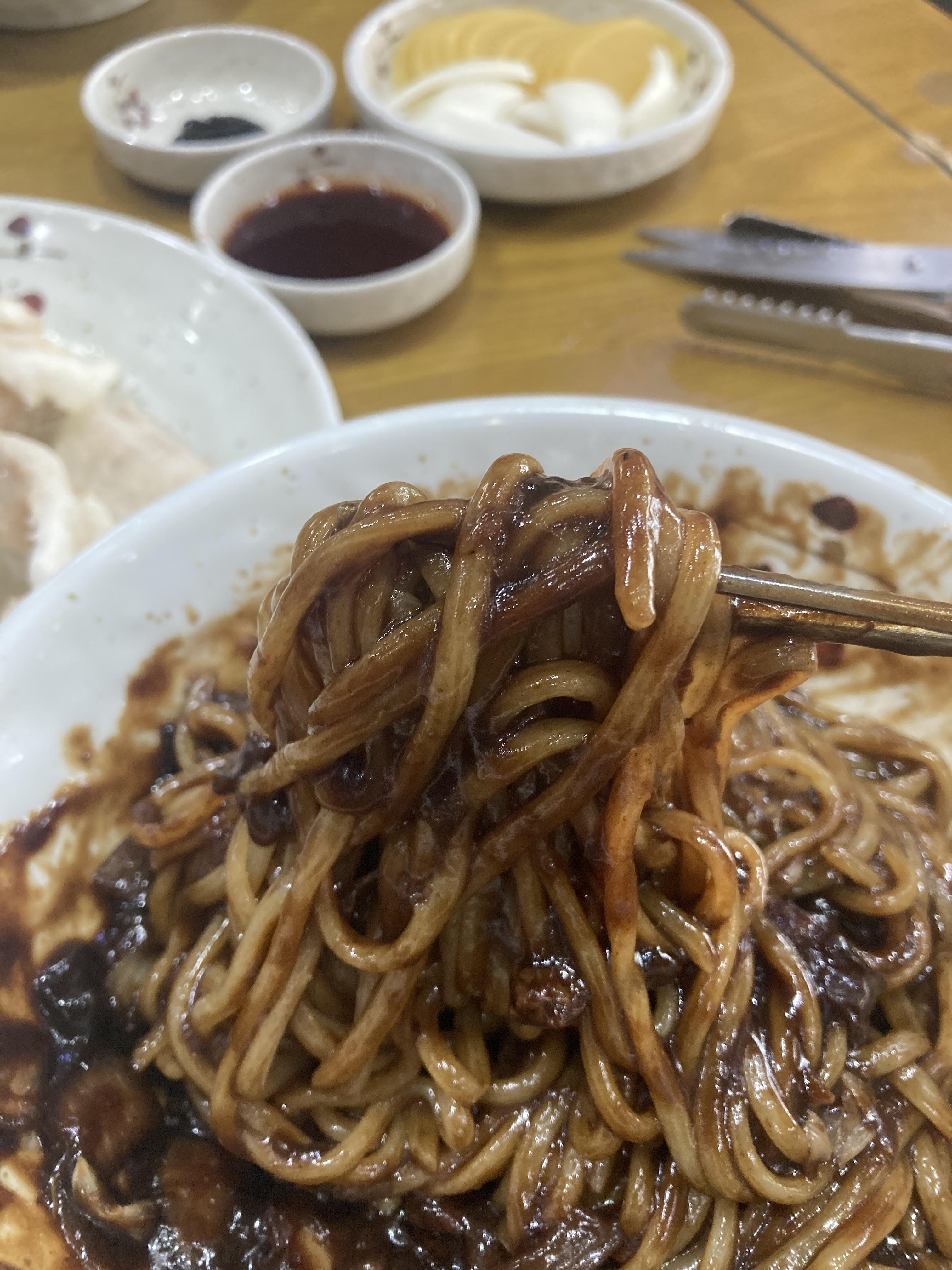 짜장면은 조금 옛날식의 짜장면이었으며, 양도 많고 맛도 적당히 맛있었습니다.
